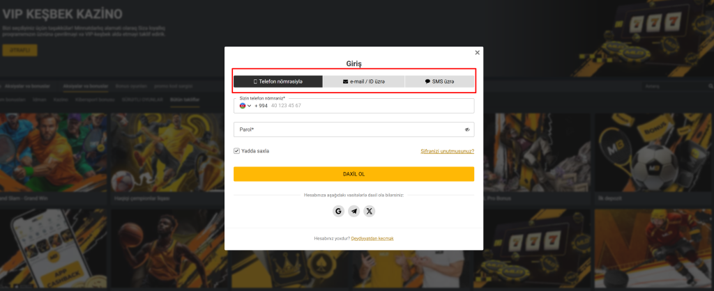 - Telefon nömrəsi ilə. Mobil nömrənizi yazdıqdan sonra sistem tərəfindən göndərilən bir-dəfəlik SMS kodunu daxil edin.
