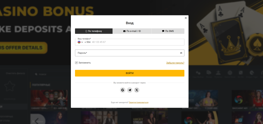 Введите зарегистрированный адрес электронной почты и пароль в соответствующие поля формы входа. - По номеру мобильного телефона